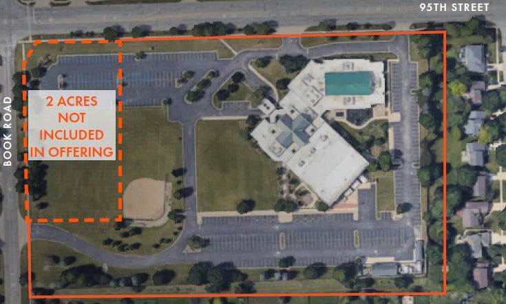 Two acres of the 13.05+ parcel on the hard corner are not included in the offering but could be made available at an additional price. Survey would need to be conducted to separate property and for cross easements. *The building is a partially two-story 65,000+ square foot facility. *In addition to the sanctuary area, the building contains an educational wing. *The property offers two multipurpose rooms, the one in the sanctuary area may be divided for multiple users at the same time.