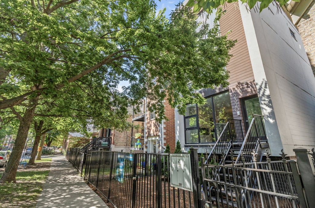 Nestled in the heart of prime Bucktown is this expansive and modern two-story duplex with exuberant amounts of light... and open concept space! Living room offers floor-to-ceiling windows, a cozy brick WOOD BURNING fireplace and generous ceilings. A kitchen/family room combo features the perfect place to entertain and relax, plus connects to the outdoor terrace. Stunner kitchen is outfitted with Quartz countertops, custom cabinetry, high end appliances, a full-length backsplash and has a large island plus ABUNDANT cabinet space. Downstairs you will find the primary suite with a spa-like bathroom complete with double vanity, soaking tub, and glass-enclosed shower. It's a true oasis! Two other bedrooms, A DEN, and a laundry closet finish off the level. Both the primary and the second bathroom have operating heated floors. Outdoor living is a breeze with your private garage rooftop deck! Easy-to-maintain turf was added to the common backyard in 2023. Located on a tree-lined street just steps from Holstein Park, top-rated Pulaski International School, the 606 Trail, and all the restaurants, boutiques, and nightlife Bucktown has to offer. Very close to the expressway to make commuting and traveling a breeze! Half the garage is included in the offering since this is a special two-unit building.