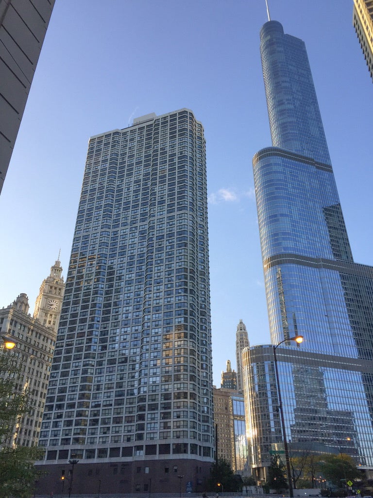 Modern 1 bedroom with stunning south facing views of the Chicago River and Chicago Riverwalk at River Plaza. Next door to the Wrigley Building and Magnificent Mile. New kitchen features modern cabinetry, new kitchen appliances, quartz countertops, and breakfast bar. Spacious layout with wood and ceramic tile flooring throughout. Rare and sought after in-unit washer and dryer hook ups. Large walk-in closet and floor to ceiling wardrobe with built-in desk can be used for additional storage. Extra wide parking space - sold separately - can fit two cars and is near elevator. River Plaza building is a full amenity building that offers 24 hour door staff, indoor pool & hot tub, on-site management & maintenance, evening security, 24 hour fitness center, sun deck, package room, party room and on-site laundry with app feature. Monthly assessment includes heat, A/C, water, cable and internet. Nearby parks include Grant Park and Millennium Park. Museums, restaurants and shopping are all at your front door! $2,350 - $2,500 possible monthly rental income! $290-$350 possible monthly rental income for parking space.