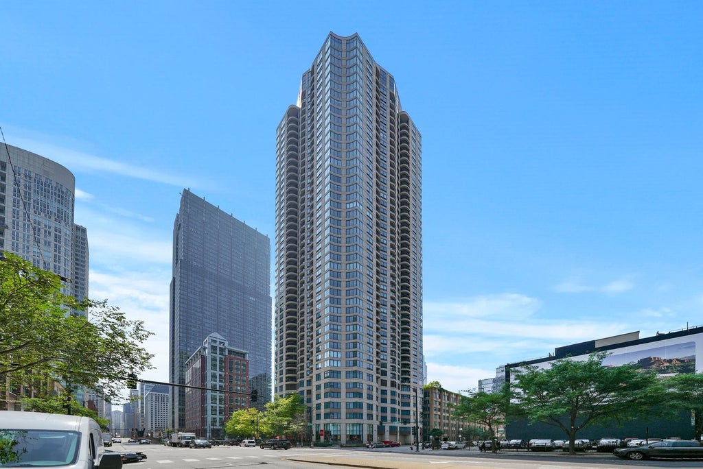 Located in the premier River North building, this spacious 1-bedroom, 1-bathroom west-facing high-floor unit is perfect as a home or investment. The rarely available "08 Tier" boasts some of the best sunsets in Chicago! Features include a bright kitchen with pass-through breakfast bar, hardwood floors throughout, in-unit washer/dryer, large balcony, and ample closets/storage. The large bedroom easily accommodates a king bed and includes space for a home office. Parking is available for lease in the building, and additional storage is included. The full-service building offers 24-hour door staff, dry cleaners, a landscaped terrace with BBQ and POOL, fitness center, and party room. Enjoy an unbeatable location within walking distance to top restaurants, shops, parks, and public transportation. Pet-friendly, investor-friendly, and no rental cap! Take a 3D Tour by clicking the 3D button to explore the space virtually!