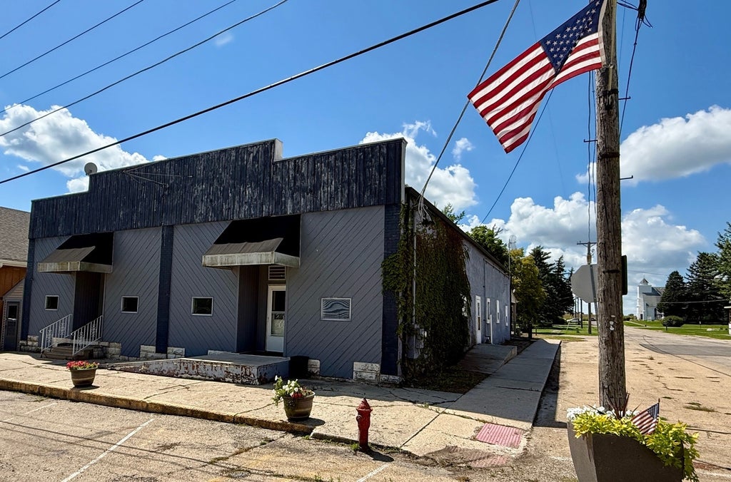 Great investment opportunity in this small town bar and restaurant with opportunity for additional income through potential Apartment in the rear of the building. Most recently was a popular bar and restaurant. The restaurant has occupancy for up to 120 plus outdoor patio space, great for the summer. Ample space for bands, hosting events and video gaming allowed. Full kitchen with 12 foot hood includes walk-in cooler, 3 door freezer, as well as 2 refrigerators behind the bar. Multiple TV's inside and outside mounted along with 2 projectors. This building was a former bowling alley with the drop ceiling hiding another approximately 3 feet of ceiling space that could be opened up. Two sets of men's and women's bathrooms in the restaurant space and another for the apartment in back. AS-IS sale. All remaining items in the building will stay.