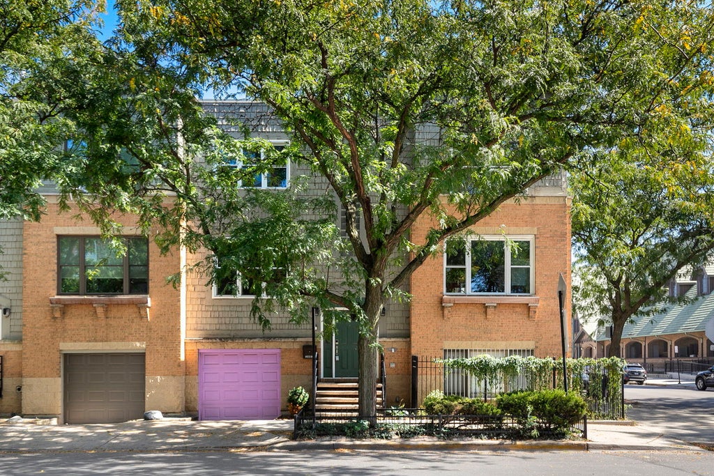 Discover this meticulously upgraded, sun-drenched fee-simple townhome offering an exceptional alternative to a single-family residence. The main level features an open-concept floor plan, where a spacious living room with a gas fireplace flows seamlessly into a designer kitchen. Fully remodeled in 2022, the kitchen is appointed with Snaidero cabinetry, Cambria quartz countertops, a Miele gas range, built in microwave and built-in refrigerator, and a Cove dishwasher. A custom-built dining banquette provides both style and storage. From the kitchen, step out onto a large private deck, one of two generous outdoor spaces. The upper level is dedicated to comfort and privacy. The king-sized primary suite boasts a custom-designed walk-in closet and a beautifully remodeled (2023) en-suite bathroom, featuring a two-person walk-in tub, a separate shower, and a floating vanity with quartz countertops. Two additional bedrooms and a second full bathroom complete this floor. The versatile lower level includes a multi-functional family room, a fourth bedroom, and a third full bath. Newer French doors provide direct access to the private yard. This home is equipped with extensive technological and system upgrades, including a tankless water heater, a Samsung Bespoke All-In-One washer/dryer, and a comprehensive smart home system featuring Lutron, Ecobee, Schlage, and Hunter Douglas controls. With no HOA fees and two separate garages (one attached, one detached), this property is a rare find. Perfectly situated near parks, shopping, and dining, with easy access to the CTA Blue Line and I-90/94 for effortless commuting.