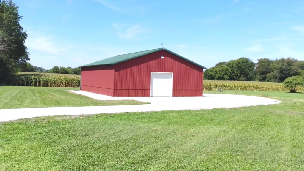 Prime location for your Residential Estate! Very secluded 10 Acres across from Kankakee State Park Hunting Area's 8 & 9, and Kankakee River. Built in 2001 - 42X53 Morton Building with concrete floor, 2 10x10 Steel insulated overhead doors, 200 Amp Electric, lighting, door openers, interior outlets and exterior RV plugin. Refrigerator and tool cabinet stay. Recorded easement for farmer access. Could be purchased separately: Zero turn TORO mower with 92 hours, hay wagon. View aerial video! Zoned A1, can be used for farming or to build a residential home.