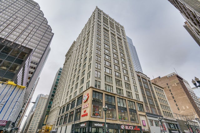 Loop/Theater District large 1400 sq ft 2 bedroom 2 bath unit, enjoy volumes of natural light with the 12 FT ceilings. This is a beautiful updated condo with hardwood floors throughout and in unit washer/dryer. Kitchen features granite countertops & stainless steel appliances, cherry cabinets. The master suite has 4 closets and a private full bath. The 2nd bedroom is lofted and works great as either a bedroom or a den. The building features 24 hour door person, workout room, 7th floor business center with free internet station - fax/copier/scanner, roof deck with grills, onsite manager and maintenance. Great central Loop location! Steps to Millennium Park, Art Institute, the Lake, red & blue EL lines.