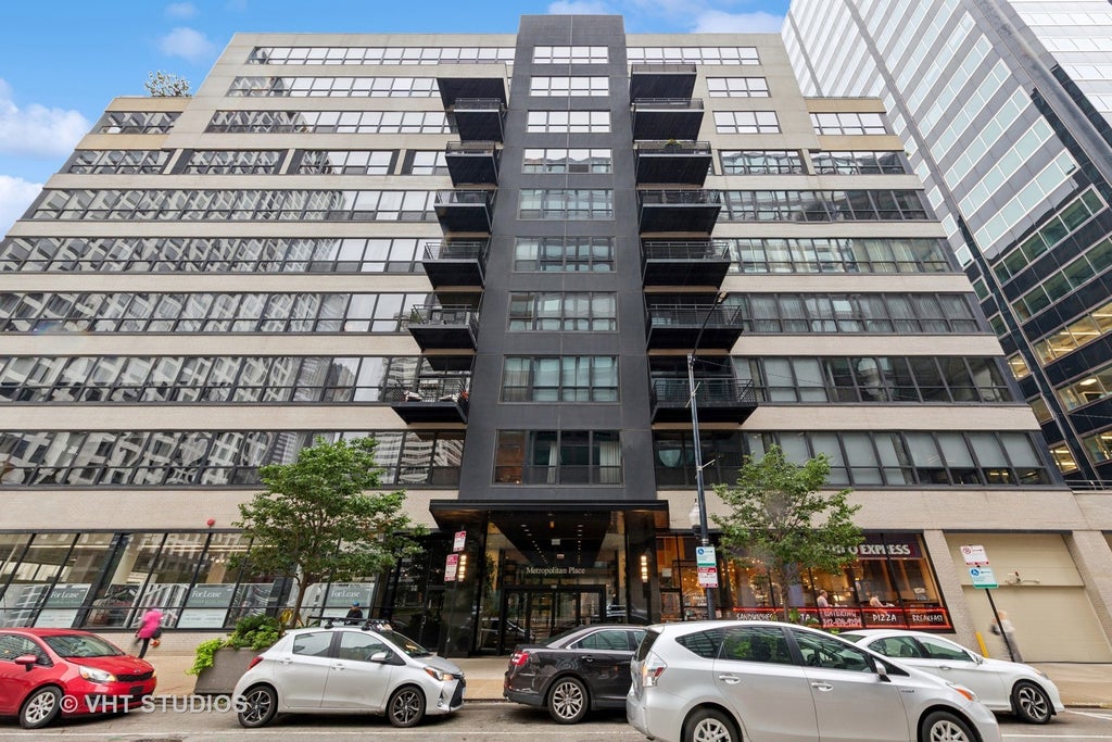 Sunny & bright 1BR/1BA in West Loop's Metropolitan Place! This home features an open kitchen with island, white cabinets, NEW quartz counters and all NEW stainless steel appliances. Spacious living area with room for a large dining table or home office. Unit features, sleek updated bathroom, hardwood floors and custom closet doors. In unit washer & dryer. Large, East facing balcony has an unobstructed view of the Sears Tower and Union Station. Building Amenities Include: 24 hour doorman, workout room, and dry cleaners and large common area deck. Just Steps to Union Station and the Loop. This is the perfect home with commuting made easy! Building has no rental cap and is investor friendly with over 3M in reserves with no pending specials. Extra wide garage parking spot #194 included in the price!